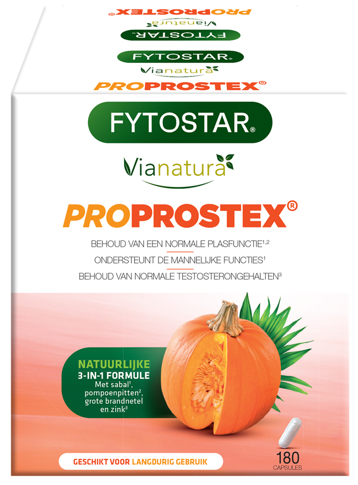 Fytostar Vianatura Proprostex® is een uitgebreide formule met bestanddelen specifiek voor de mannelijke functies. 1Sabal zorgt voor het behoud van een normale plasfunctie*. Daarnaast ondersteunt 1Sabal de mannelijke functies*. 2Zink draagt bij tot de instandhouding van een normaal testosterongehalte in het bloed.